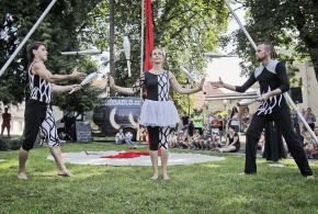 Slavná tragédie odehraná partou potulných kejklířů a cirkusáků. Střídají se humorné výstupy kejklířů se scénami z Romea a Julie. Celá tragédie je odehrána pomocí závěsné akrobacie na šálách, žonglování, párové akrobacie a tance.