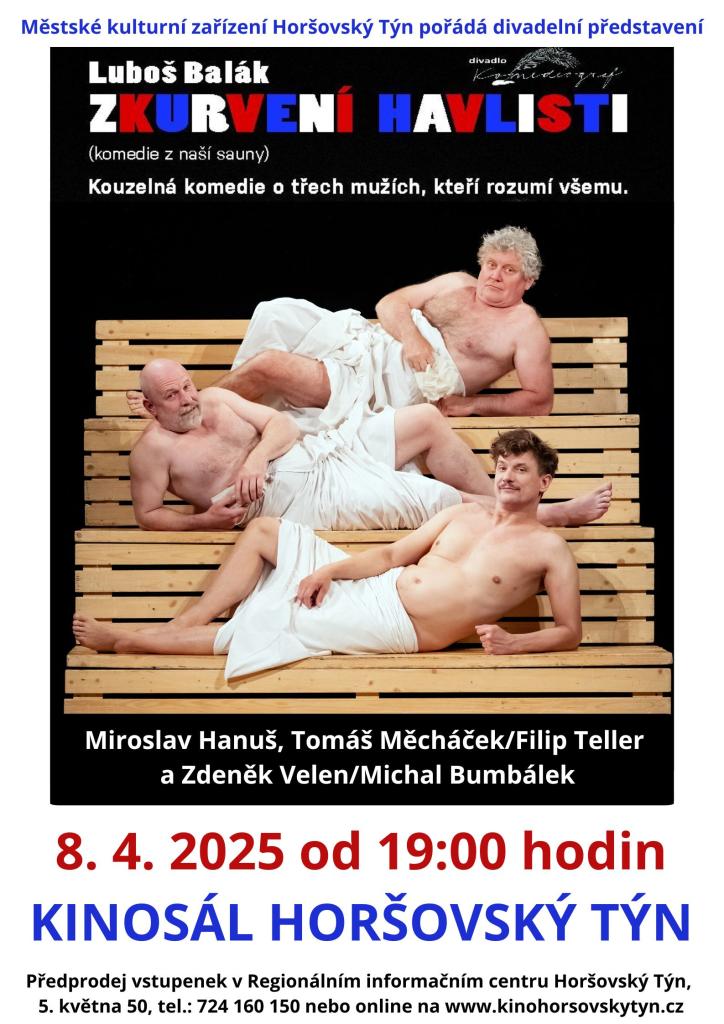 Hubert, Bořek a Vladan chodí pravidelně do té naší krásné sauny. Prohřát se. Vyplavit toxiny a utužit zdraví. A taky si popovídat. Probrat současnou společnost. Politiku. Zdravotnictví. Ekonomiku. Fotbal. Autobazary. Evropskou unii. Raketové motory. Chemické procesy v listech rostlin. Kulturu a vatu. Trochu popřemýšlet o tom, kam se ten svět vlastně sype. Se vzrůstající teplotou jejich těl stoupá i jejich nasazení. Angažovanost. Chvílemi se rozpálí do běla. Jak to dneska známe. Máte-li také zájem o lidstvo, tak přijďte, tihle chlapíci vás nakopnou určitě správným směrem. Kouzelná komedie o třech mužích, kteří rozumí všemu.