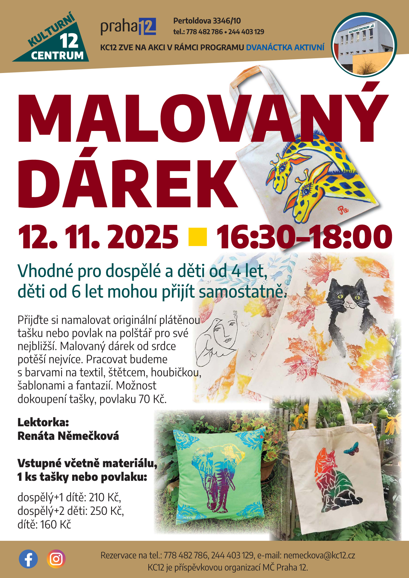 Rezervace: 244 403 129, 778 482 786, nemeckova@kc12.cz