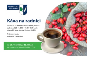 Vážení občané, zveme vás na tradiční Kávu na radnici (setkání s vedením MČ), která se koná v pondělí 20. 10. 2025 od 16.30 hodin v budově Úřadu, Libušská 35/200. Jste srdečně zváni!!!