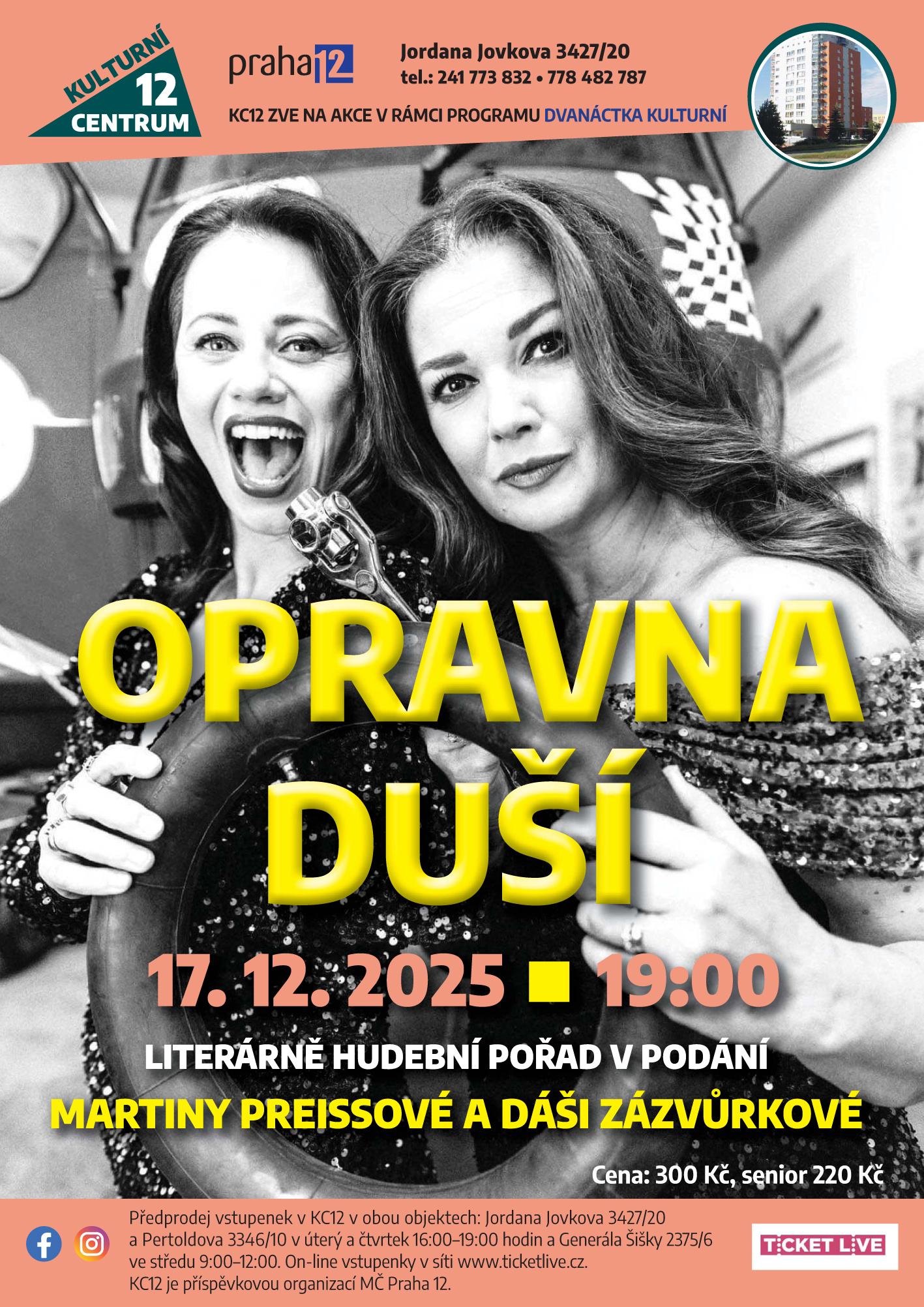 Nutná rezervace: 778 482 787, 241 773 832 jara@kc12.cz