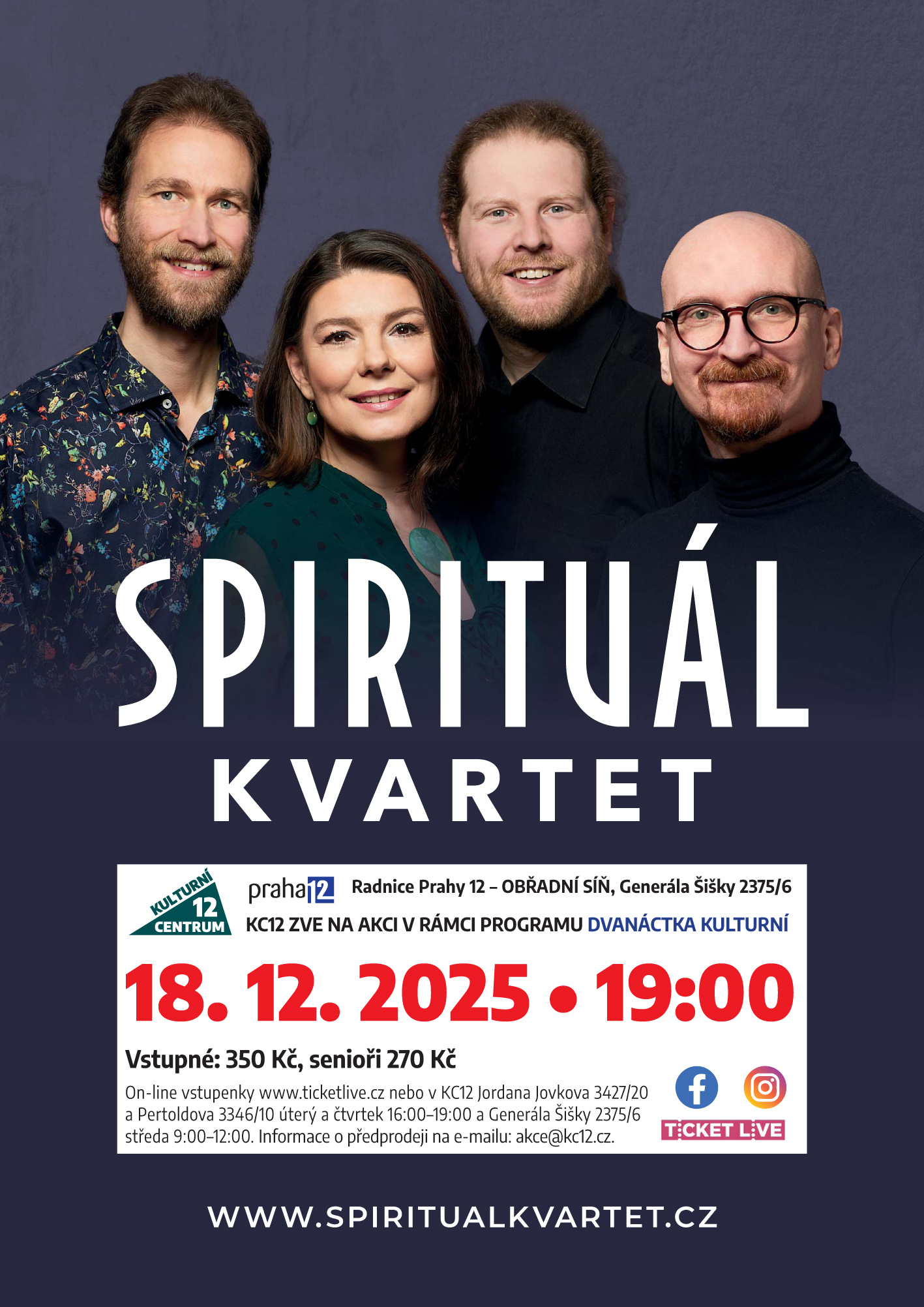 Spirituál kvartet je skupina přímo navazující na legendární československou folkovou kapelu Spirituál kvintet. Kontinuitu s tímto souborem, významně ovlivňujícím domácí hudební scénu více než šedesát let, zaručuje nejen návrat k původnímu historickému názvu, ale především účast Jiřího Holoubka a Veroniky Součkové, dlouholetých členů Spirituál kvintetu. Ti své síly spojili se dvěma dalšími vynikajícími muzikanty. Zpěvákem, skladatelem, banjistou, hráčem na steel kytaru a kontrabas Zbyňkem Burešem, a kytaristou, zpěvákem, majitelem podmanivého basu Janem Jandou.