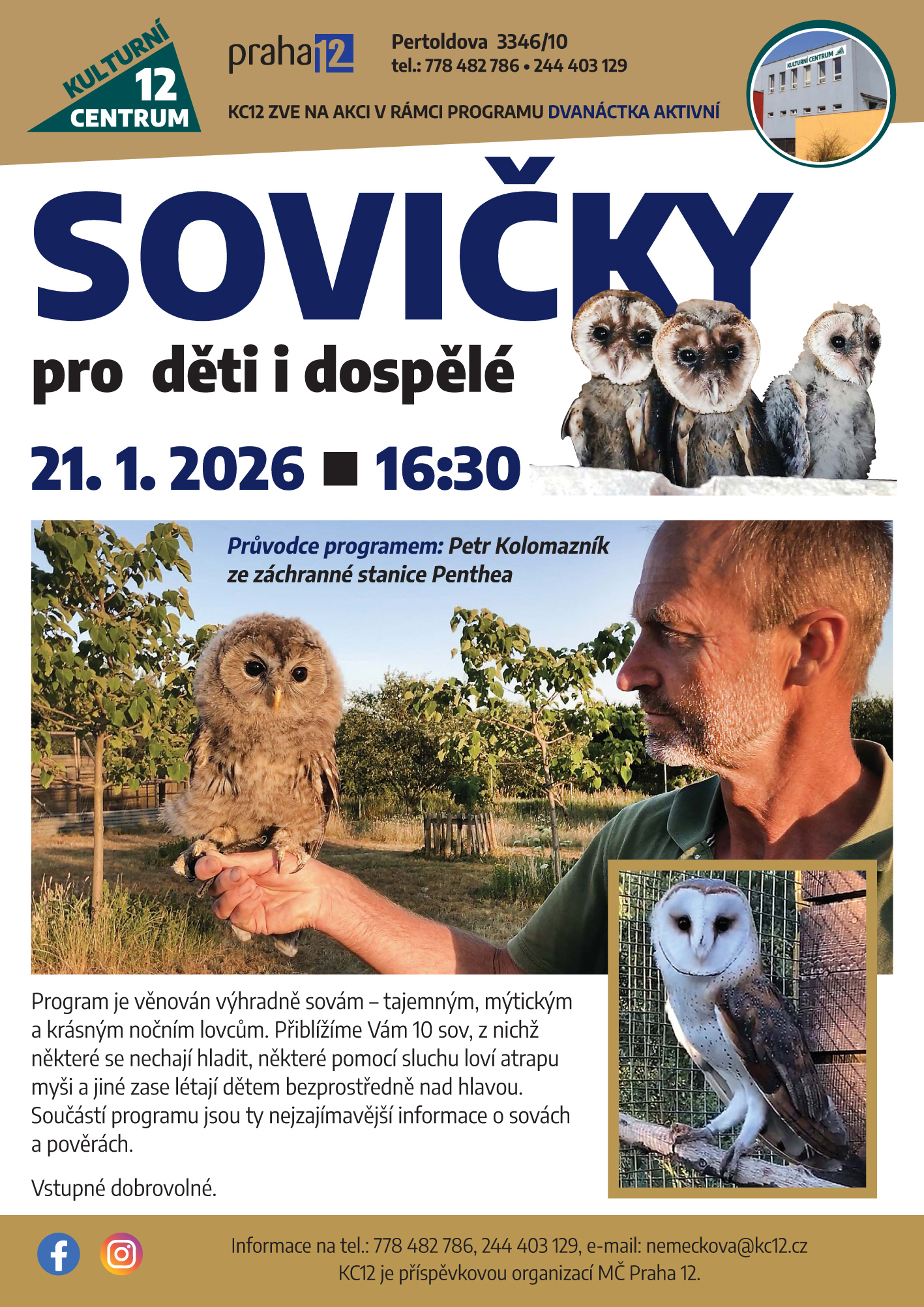 Program je věnován výhradně sovám – tajemným, mýtickým a krásným nočním lovcům. Přiblížíme Vám 10 sov, z nichž některé se nechají hladit, některé pomocí sluchu loví atrapu myši a jiné zase létají dětem bezprostředně nad hlavou. Součástí programu jsou ty nejzajímavější informace o sovách a pověrách.