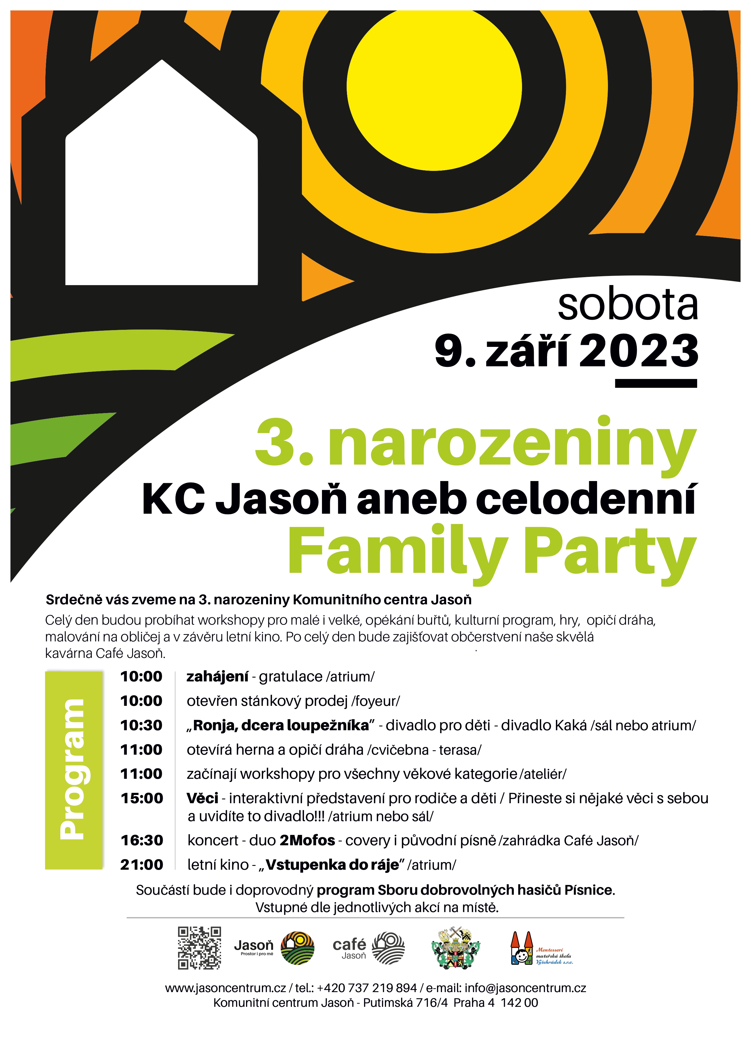 KC zve v sobotu 9. 9. 2023 od 10.00 hod. na oslavu 3. narozenin KC Jasoň.
