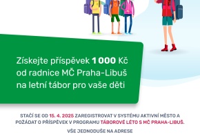 Vážení občané, máte nyní možnost zažádat o příspěvek 1000,- na letní tábory pro vaše děti. Podmínkou je trvalý pobyt v naší městské části. Další informace naleznete zde: