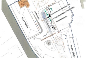 - Problémem zůstává, jak chodníkem překonat kamennou zeď. Prakticky připadají v úvahu dvě možnosti: vertikálně, tj. nade zdí realizovat průhlednou lávku (z pororoštu) se schodištěm z obou stran, polohopisně, tj. přímý chodník nahradit „šikanou“. To by znamenalo další výměnu pozemku se sousedem.