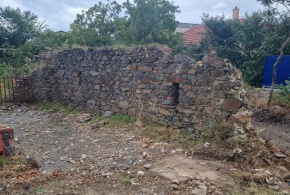 A nyní se dostáváme k vlastní revitalizaci dvora. Vypsali jsme výběrové řízení na projekt pro stavební povolení a na jeho základě vybrali projektanta. Nakonec jsme ale byli nuceni projektování pozastavit. Proč? Pokusím se to vysvětlit. Areál čp. 1 obsahuje budovu čp. 1 (poštu), dvůr, různá torza někdejší barokní ohradní zdi a téměř uprostřed dvora je torzo kamenné zdi neznámého stáří. Areál ani žádná jeho část nepodléhá památkové ochraně. Oproti tomu existuje názor, že k areálu je třeba se chovat stejně, jako kdyby památkové ochraně podléhal. Tento názor je založen na faktu, že se jedná o prokazatelně nejstarší dochované sídlo v katastru Libuše. A proto zasluhuje zvláštní zacházení. Z toho vyplývá požadavek na maximální možné zachování kamenné zdi. Vlastní kamenná zeď má proměnnou výšku max. cca 2,3 m a půdorys tvaru obráceného písmene L. Jeho delší strana je cca 9 m dlouhá, kratší cca 2 m. V horní části je značně zdegradovaná, ve střední části šikmá a dle znaleckého posudku je nestabilní a nespolehlivá. Vlastníme nabídku na projekt na záchranu zdi (cena 95 000 Kč).